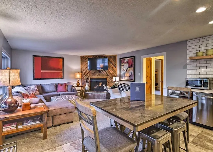 Downtown Breck Condo On Main St - Walk To Slopes Breckenridge, está situado en el barrio histórico Centro histórico, a 500 metros de South Main Street, y tiene vistas a las montañas. Los huéspedes de este apartamento pueden disfrutar de la comodidad de acceder a un centro de bienestar.